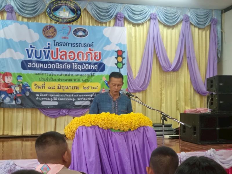 รายละเอียด : วันที่ 18 มิถุนายน 2568 องค์การบริหารส่วนตำบลหนองสูงใต้ จัดอบรม โครงการรณรงค์ขับขี่ปลอดภัย สวมหมวกนิรภัย ไร้อุบัติเหตุ โดยมี พันตำรวจเอกเกรียงศักดิ์ จันทร์เต็ม นายกองค์การบริหารส่วนตำบลหนองสูงใต้ เป็นประธานในพิธีเปิด และนางสาววิภาวรรณ ดวงดีแก้ว ปลัดองค์การบริหารส่วนตำบลหนองสูงใต้ เป็นผู้กล่าวรายงาน ณ ห้องประชุมองค์การบริหารส่วนตำบลหนองสูงใต้