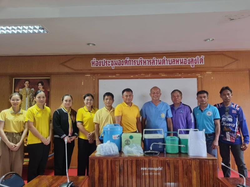 รายละเอียด : องค์การบริหารส่วนตำบลหนองสูงใต้ จัดกิจกรรม โครงการสัตว์ปลอดโรค คนปลอดภัยจากโรคพิษสุนัขบ้า ประจำปีงบประมาณ พ.ศ.2568 โดยออกฉีดวัคซีนพิษสุนัขบ้าให้กับสุนัขและแมว ในพื้นที่ตำบลหนองสูงใต้ อำเภอหนองสูง จังหวัดมุกดาหาร