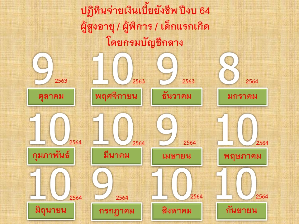 ปฏิทินการจ่ายเงินเบี้ยผู้สูงอายุและเบี้ยความพิการ ปีงบ 64