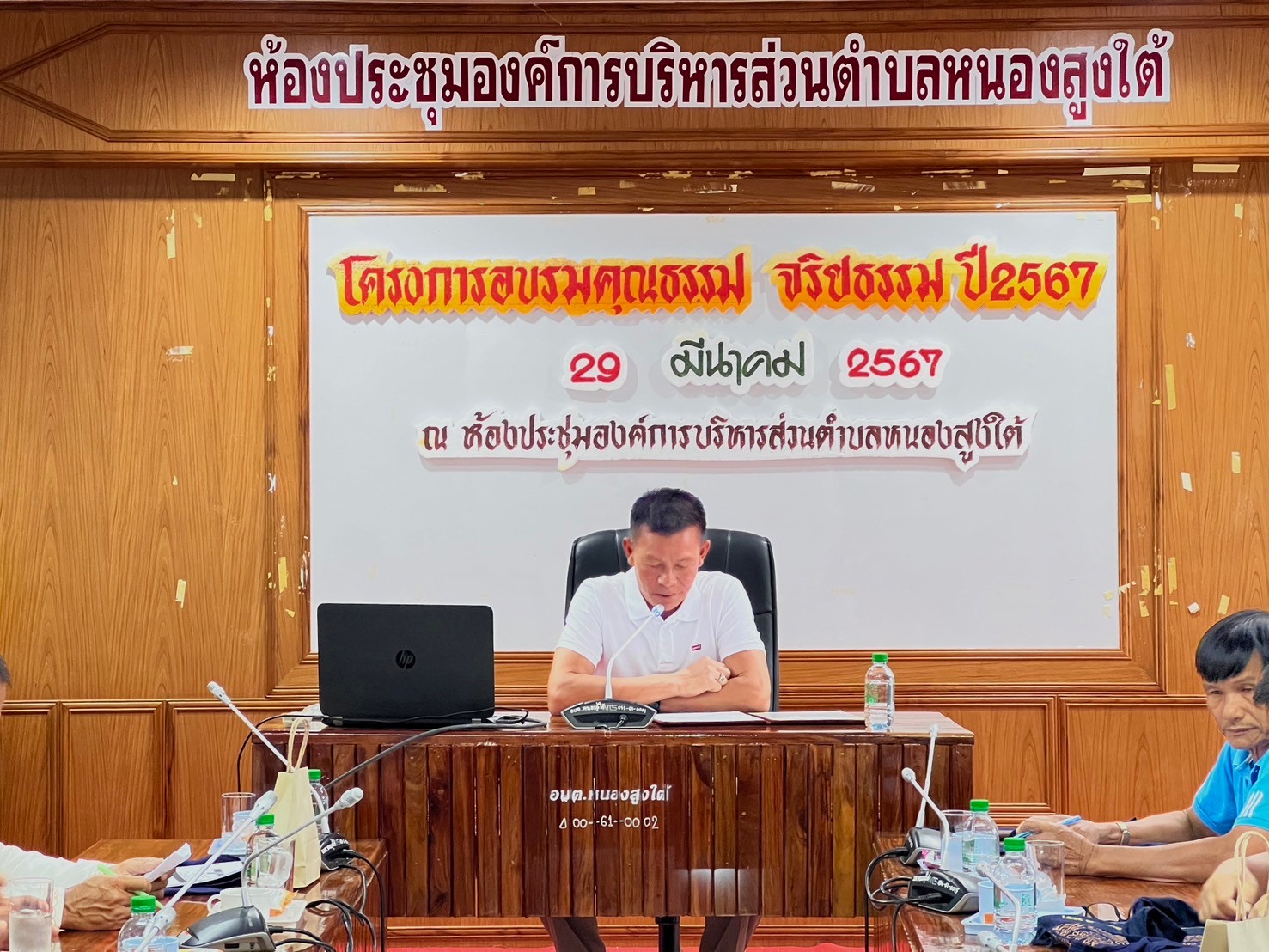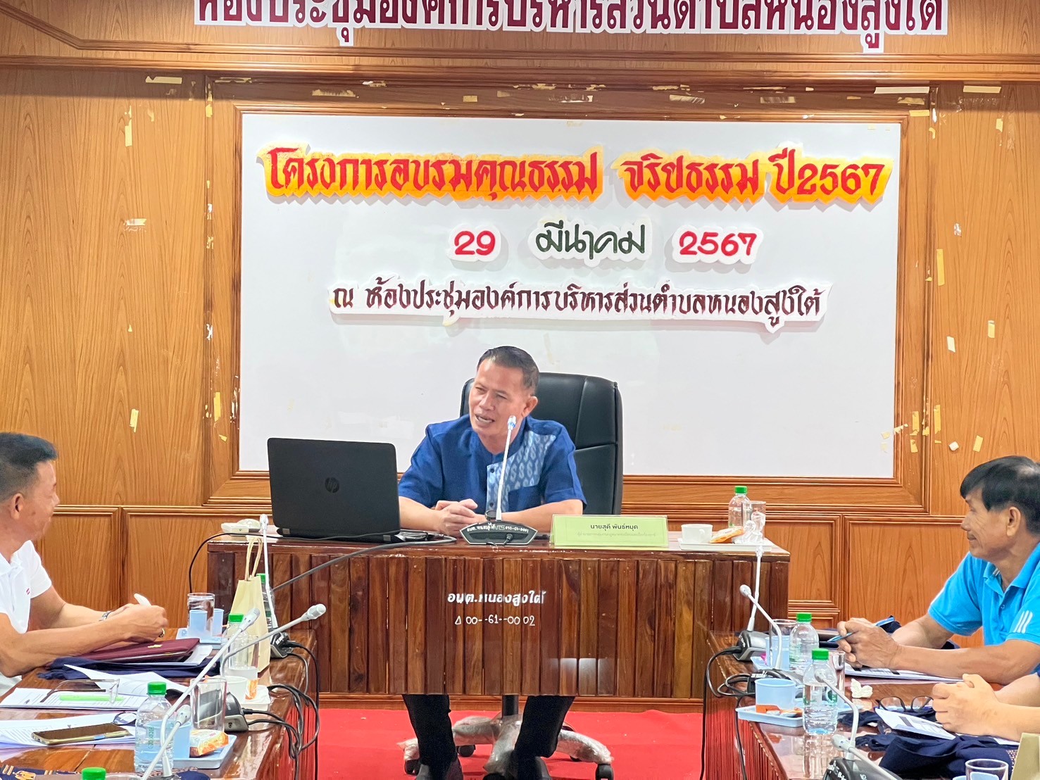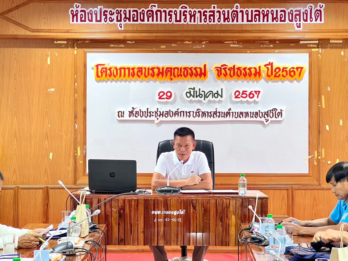 มื่อวันที่ 29 มีนาคม 2567 องค์การบริหารส่วนตำบลหนองสูงใต้ จัดโครงการอบรมคุณธรรม จริยธรรมและความโปร่งใสในการดำเนินงานองค์การบริหารส่วนตำบลหนองสูงใต้ ภายใต้แนวคิดต่อต้านการการทุจริต ประกอบไปด้วย ผู้บริหาร ฝ่ายสภาฯ ข้าราชการ พนักงานจ้าง ในการนี้ได้เรียนเชิญวิทยากรจากสำนักงานป้องกันและปราบปรามการทุริต ประจำจังหวัดมุกดาหาร มาให้ความรู้และแนวคิดในการต่อต้านการทุุริต ณ ห้องประชุม 2 องค์การบริหารส่วนตำบลหนองสูงใต้